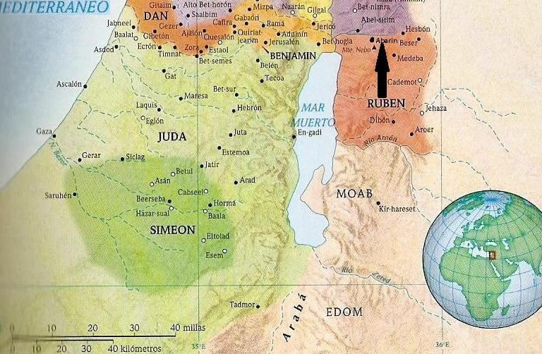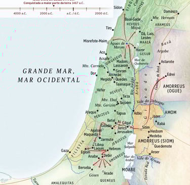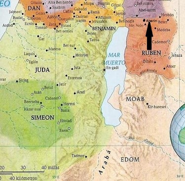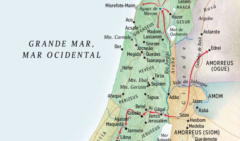 Referências geográficas importantes que marcam o percurso de Israel nas terras de Moabe. Essas regiões destacam a travessia do povo até o momento crucial da despedida de Moisés.Rio Jordão: