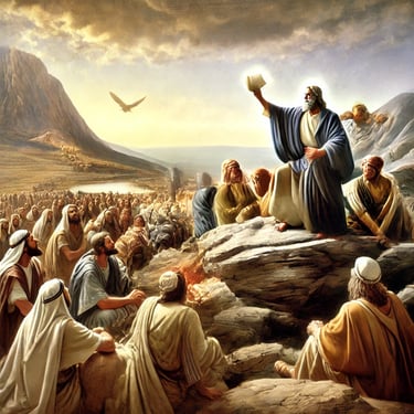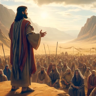 Abaixo você verá algumas imagens criadas por I.A. que demonstram um pouco do que aconteceu em Deuteronômio, na ordem cronológica dos textos.