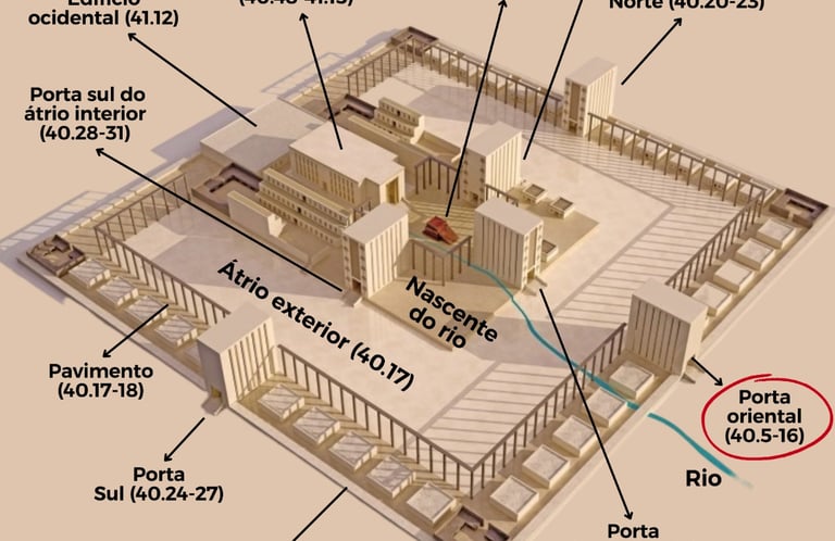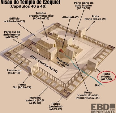 Ezequiel vê um templo glorioso, representando a restauração espiritual e a presença eterna de YHWH entre Seu povo.