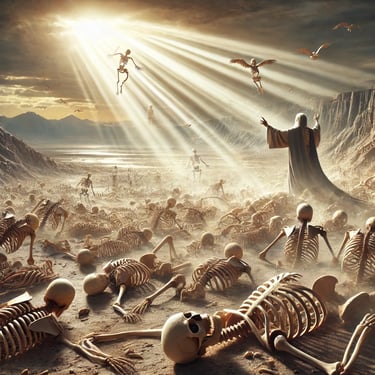Ezequiel tem uma visão onde ossos secos ganham vida, simbolizando a ressurreição espiritual e nacional de Israel.