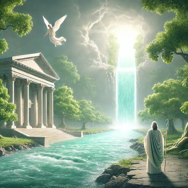 "E eis que a glória do Deus de Israel vinha do caminho do oriente; e a sua voz era como a voz de muitas águas, e a terra resplandeceu com a sua glória."Ezequiel 47:9 – O Rio da Vida