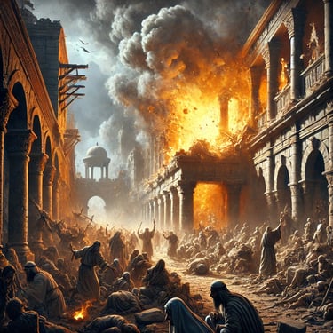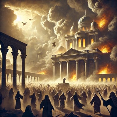Abaixo você verá algumas imagens criadas por I.A. que demonstram um pouco do que aconteceu em Lamentações, na ordem cronológica dos textos.