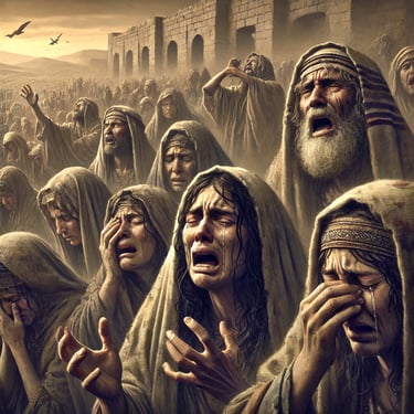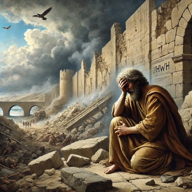 O Livro de Lamentações, o vigésimo quinto da Bíblia, é uma coleção de cinco poemas que expressam a dor e o luto pela destruição de Jerusalém em 586 a.C. Tradicionalmente atribuído ao profeta Jeremias, o livro descreve o sofrimento do povo de Judá após a invasão babilônica, o cerco devastador, a fome extrema e a destruição do Templo de YHWH.