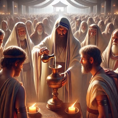 O ritual de consagração de Arão e seus filhos envolvia unção com óleo e sangue. Isso apontava para a separação dos sacerdotes para o serviço sagrado, uma sombra da consagração espiritual dos crentes em Yahushua (1 Pedro 2:9).