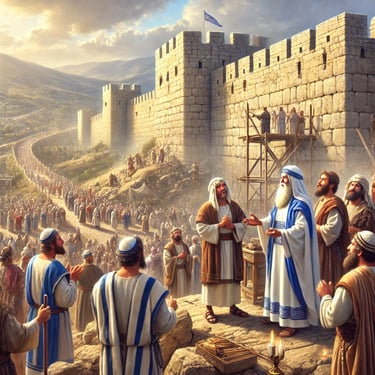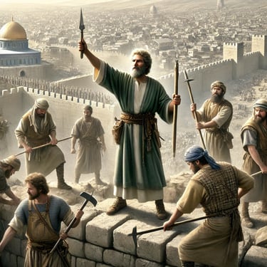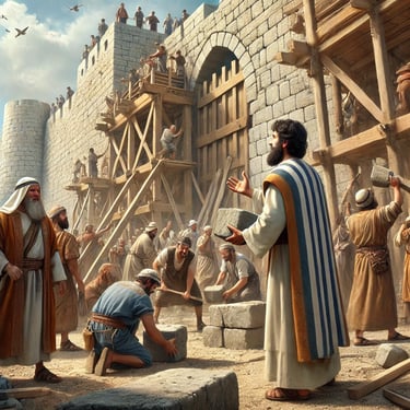 Com uma liderança firme, Neemias motiva o povo a reconstruir os muros em tempo recorde, apesar da oposição de inimigos como Sambalate e Tobias.