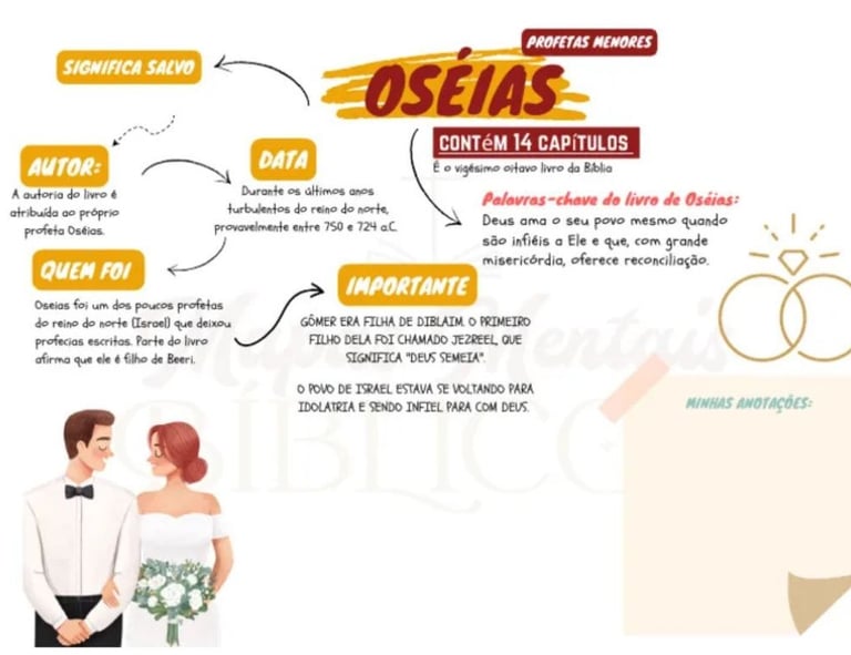O livro de Oséias, o vigésimo oitavo da Bíblia, é um dos mais impactantes registros proféticos das Escrituras, trazendo uma mensagem de juízo e restauração através da relação simbólica entre o profeta e sua esposa infiel. O nome Oséias, em hebraico Hoshea (הוֹשֵׁעַ), significa "salvação", refletindo a mensagem central do livro: o amor incondicional de YHWH pelo Seu povo, apesar de sua infidelidade.